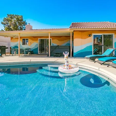 The Palmcation - 4 Bedrm, Saltwater Pool, Hot Tub, Game Room, 5 Mi To Acrisure Arena Bermuda Dunes villa is op 15 minuten rijden van het Coachella Valley History Museum gelegen en beschikt over een privézwembad, een bubbelbad, voor een ontspannen verblijf.
